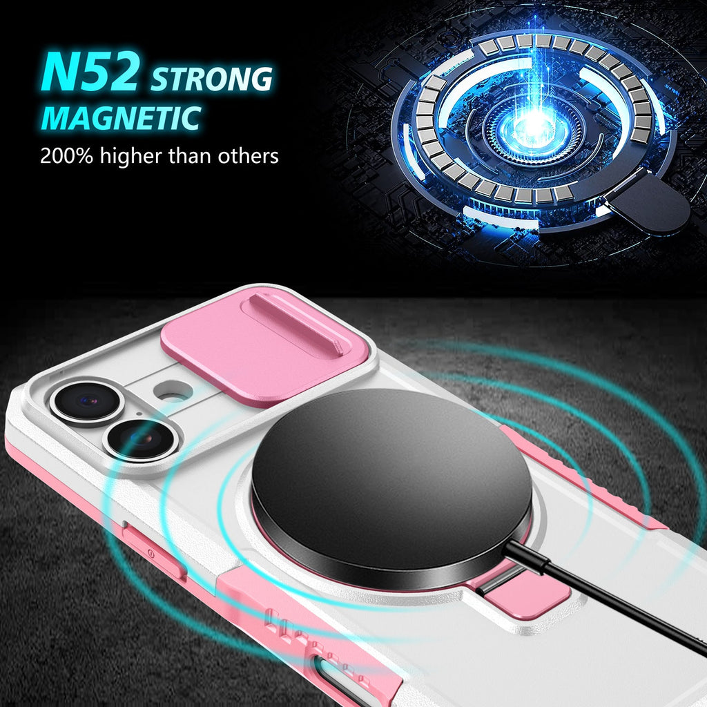Quality MagSafe Compatible Magnetic Ring Heavy Duty Kickstand iPhone 16 Plus Case with Rear Camera Sliding Cover