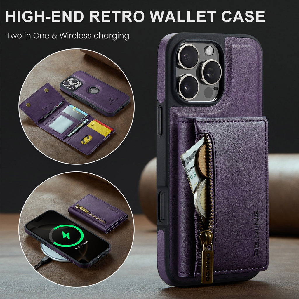 High quality DG.MING iPhone 16 Pro Case features a two-in-one design with a phone case and a mini wallet that can be attached together by strong magnetism. Also it supports magsafe wireless charging.