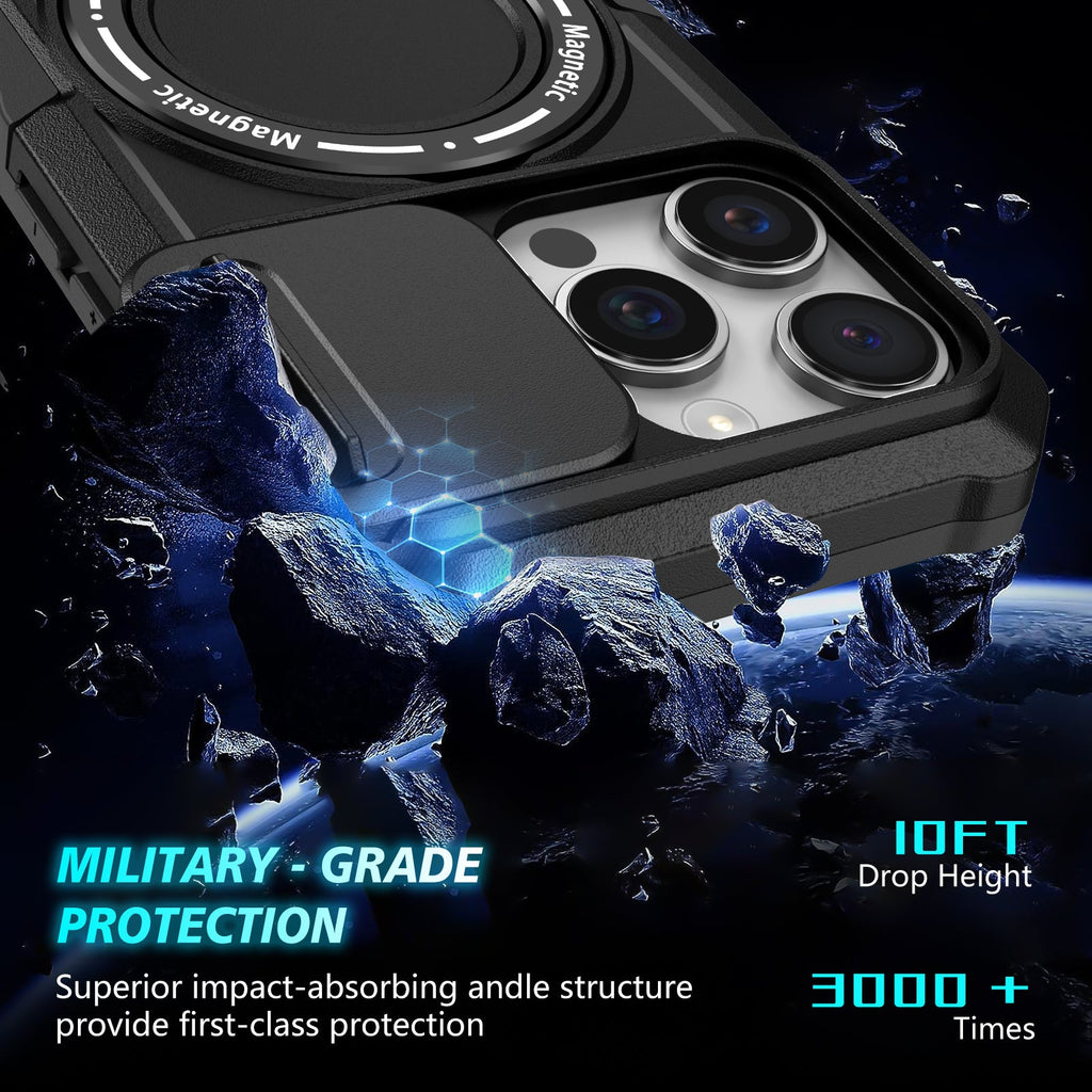 Quality MagSafe Compatible Magnetic Ring Heavy Duty Kickstand iPhone 16 Pro Case with Rear Camera Sliding Cover