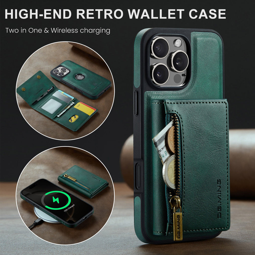 High quality DG.MING iPhone 16 Pro Case features a two-in-one design with a phone case and a mini wallet that can be attached together by strong magnetism. Also it supports magsafe wireless charging.