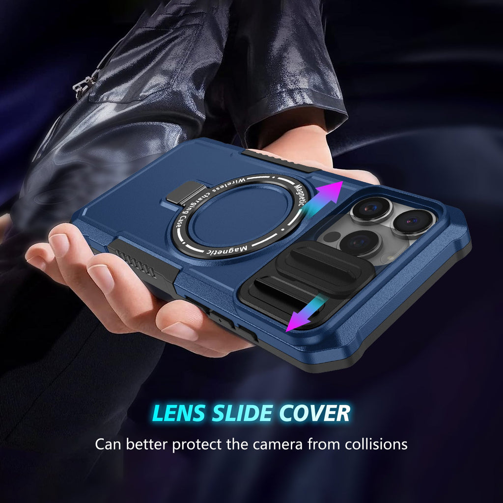 Quality MagSafe Compatible Magnetic Ring Heavy Duty Kickstand iPhone 16 Pro Max Case with Rear Camera Sliding Cover