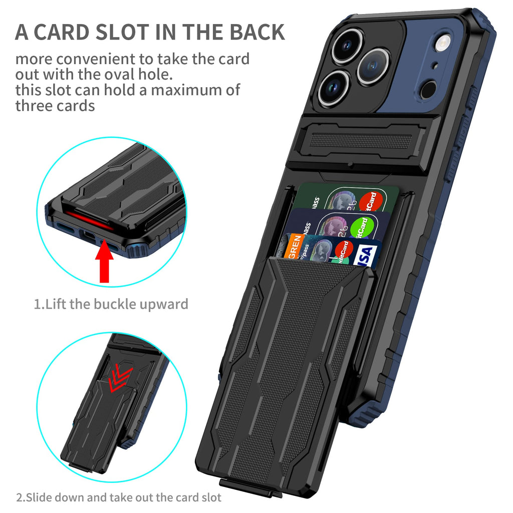 Quality Heavy Duty Armour Kickstand Rugged iPhone 17 Pro Max Case With Slide Down Card Holder