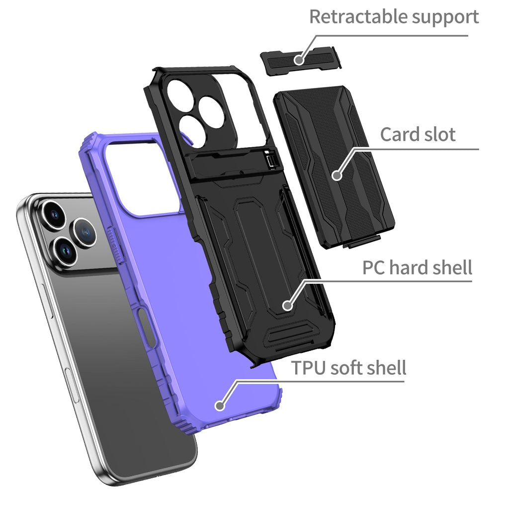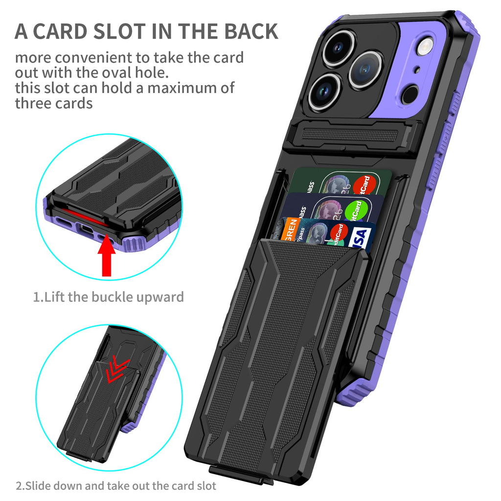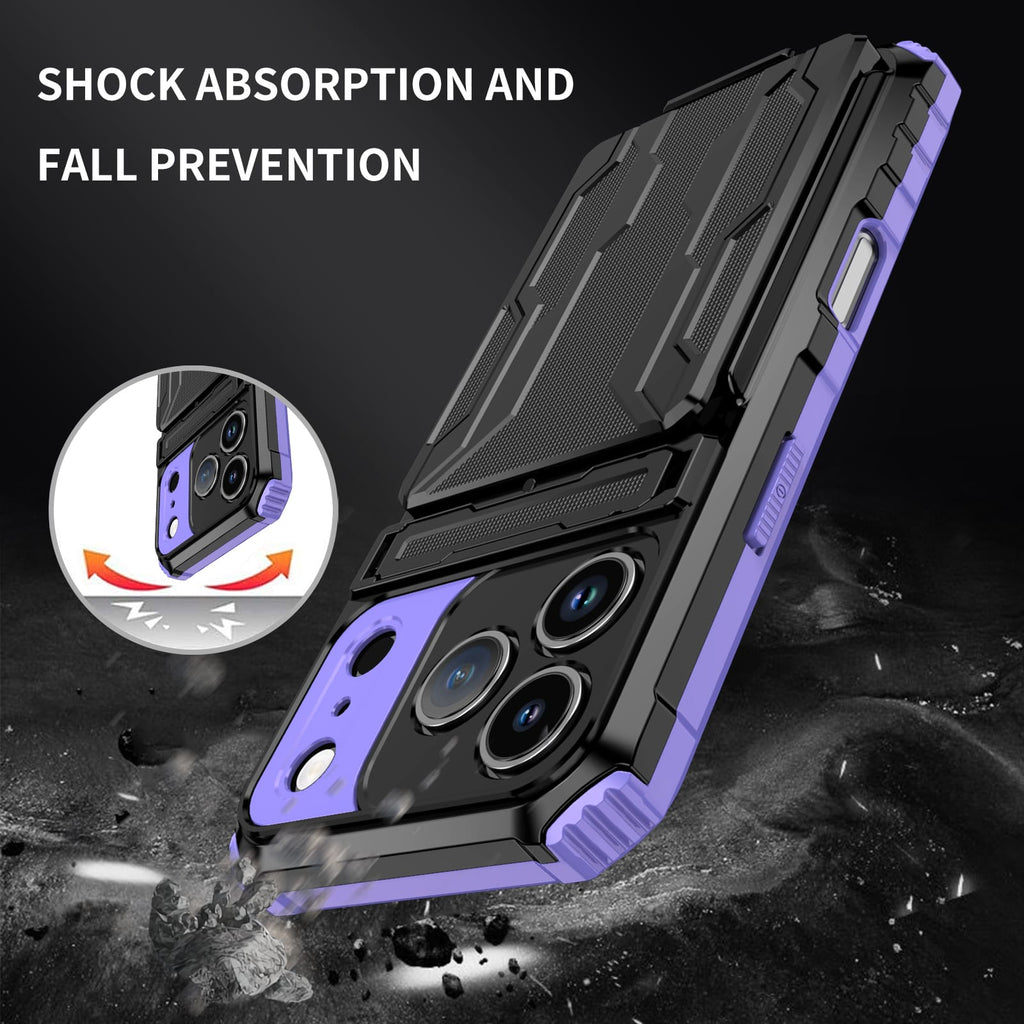Quality Heavy Duty Armour Kickstand Rugged iPhone 17 Pro Case With Slide Down Card Holder