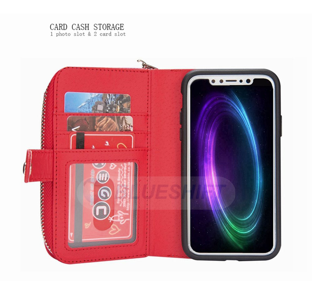 This multifunctional iPhone XS Max Case can meet your needs in daily life. The iPhone XS Max Case can be used as either a all-in-one wallet, or a slim detachable back case. The multiple compartments of the iPhone XS Max Case with zipper closure can hold credit cards, cash, coins, photo etc securely.