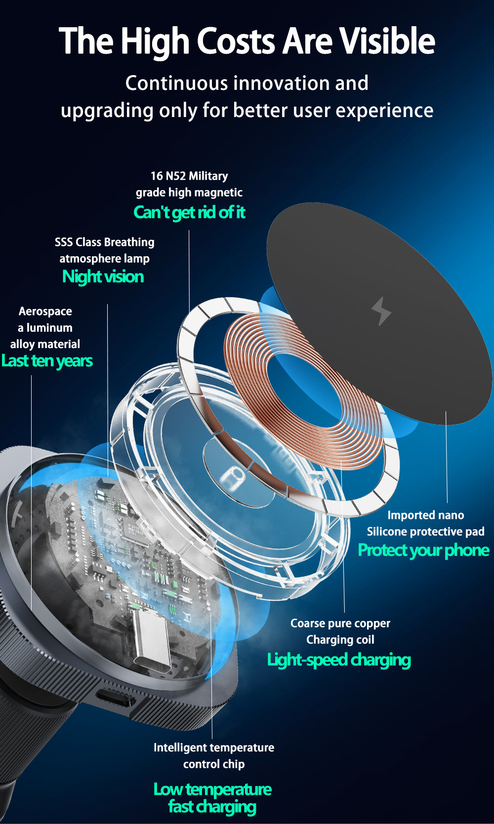 Wireless Fast Charging: Max 15W specially designed for iPhone 12+ all series, smart fast charging by 5W, 7.5W, 10W, and 15W. Compatible with other phone models with Magsafe compatible phone cases