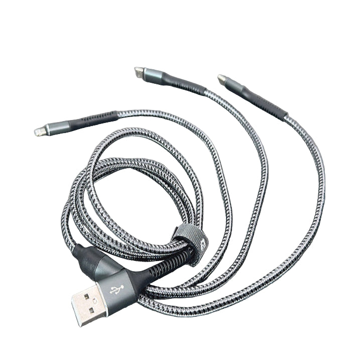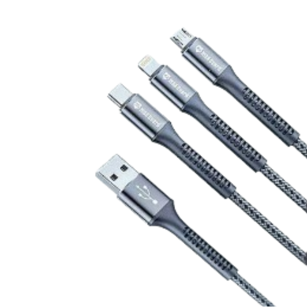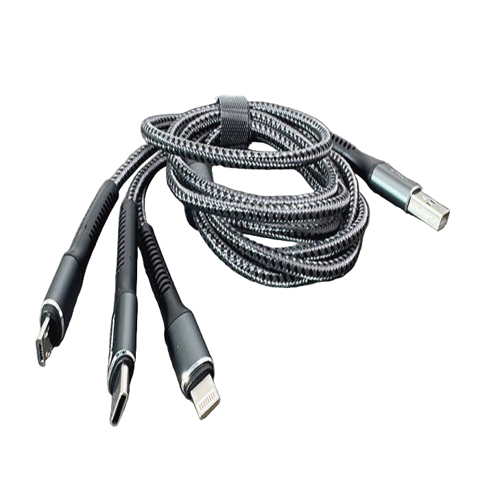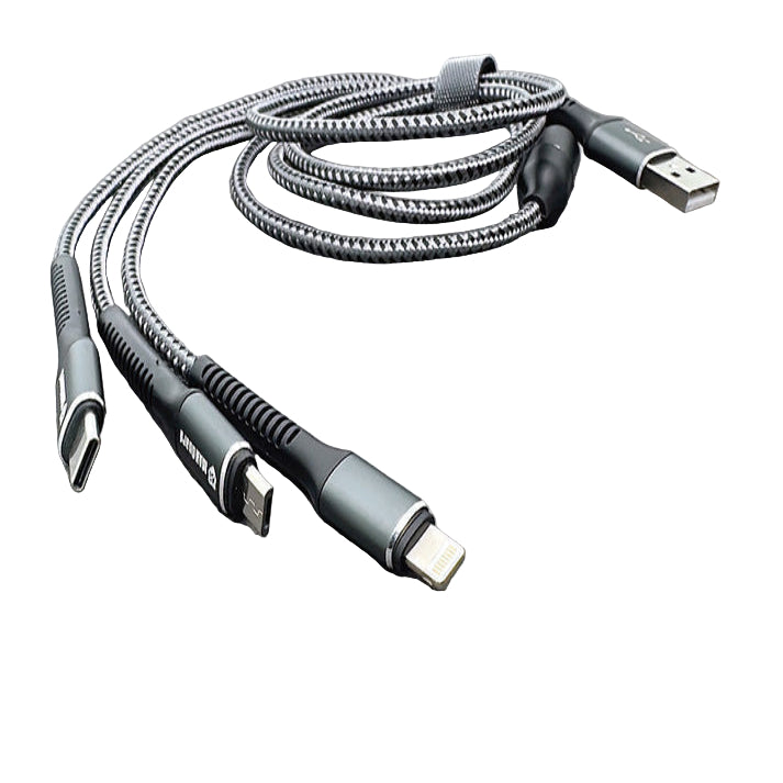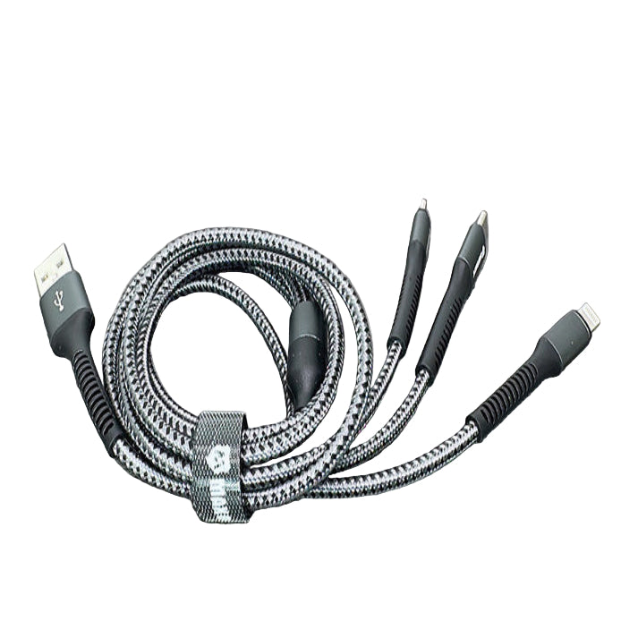 Equipped with Lightning, Micro USB, and Type-C connectors, this 1.2-meter cable powers smartphones, GPS units, headphones, cameras, and more—all without needing separate cables.