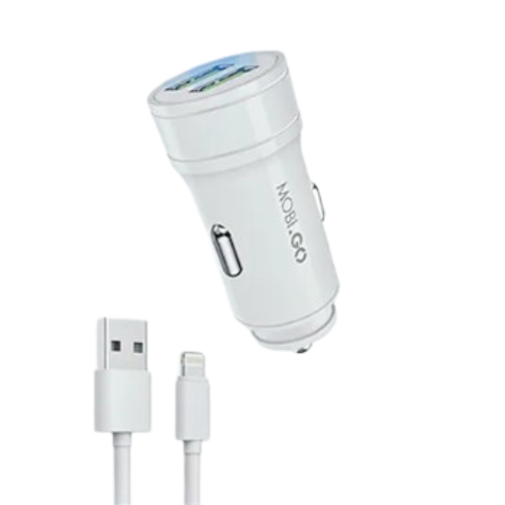 Power up on the road with the Mobigo GO221L Dual USB Fast Car Charger. Designed for convenience and speed, it features both Type-C and USB-A ports to charge two devices simultaneously.