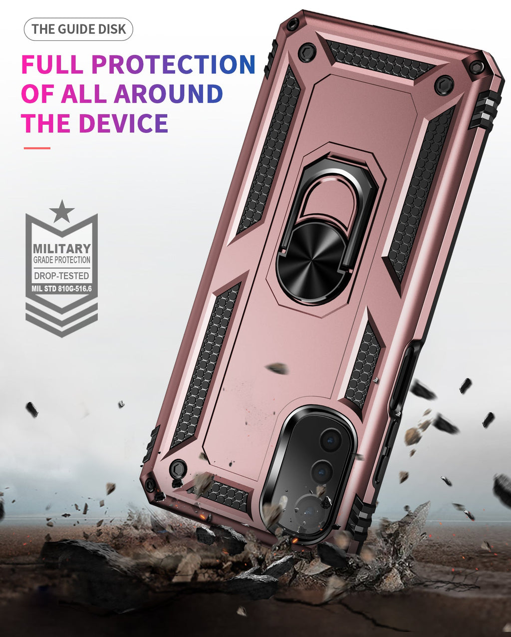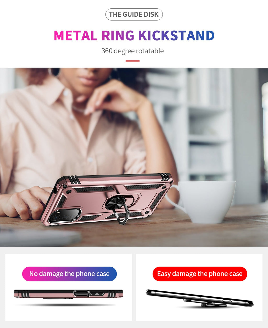 360 degree rotatable aluminum alloy ring kickstand on the Motorola moto e32 Case allows for the optimal viewing position