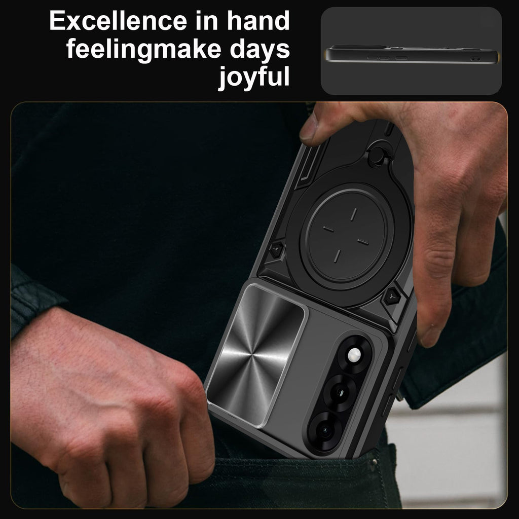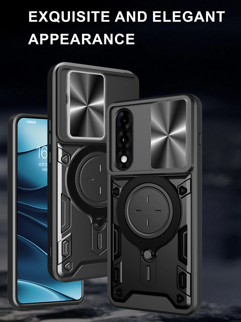 Add bold style and reliable protection to your phone with this Rugged Armor Ring Case, specially designed for the OnePlus Nord 5. Featuring a CD-textured sliding camera cover, built-in metal ring stand, and shock-resistant design, this case is perfect for users who need function and toughness — all in one.
