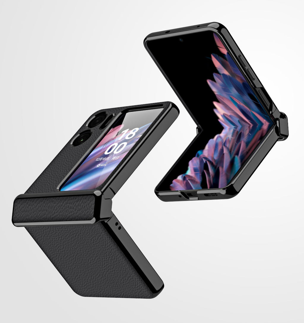 Quality OPPO Find N2 Flip Case With Electroplating Frame and PU Leather Texture