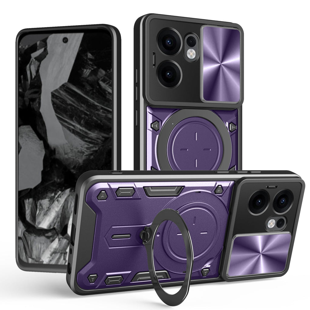 Brand New Rugged Ring Kickstand Case with Sliding Camera Cover for OPPO Reno 13F 5G