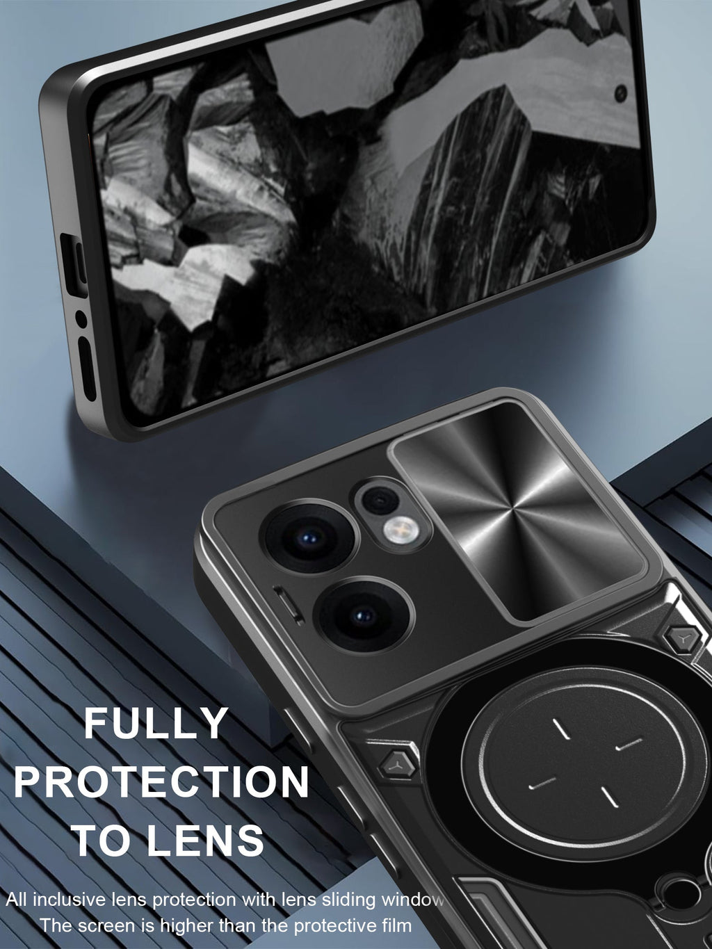 Add bold style and reliable protection to your phone with this Rugged Armor Ring Case, specially designed for the OPPO Reno 13F 5G. Featuring a CD-textured sliding camera cover, built-in metal ring stand, and shock-resistant design, this case is perfect for users who need function and toughness — all in one.