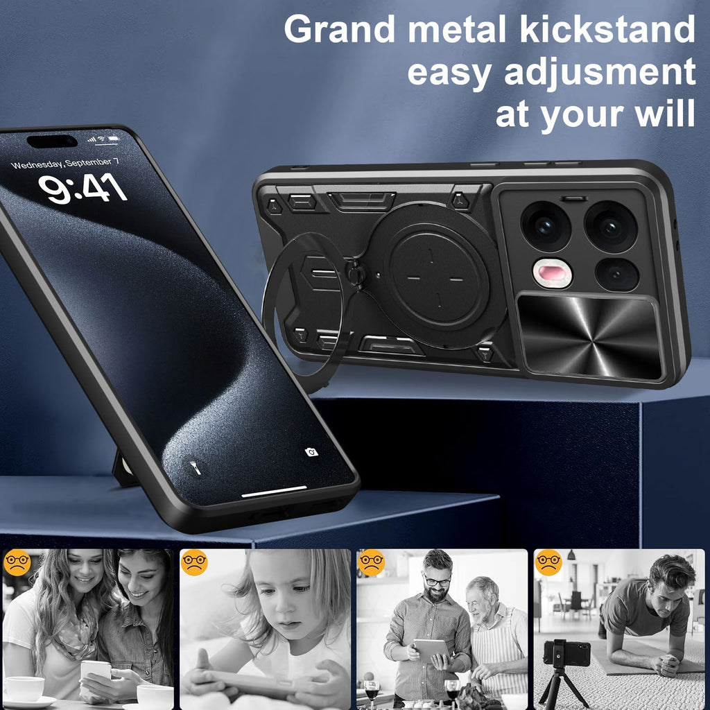 Brand New Rugged Ring Kickstand Case with Sliding Camera Cover for OPPO Reno 13 Pro 5G