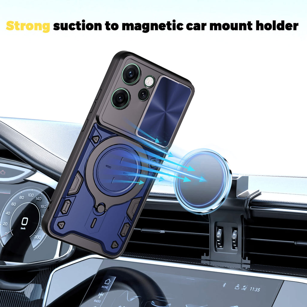 Add bold style and reliable protection to your phone with this Rugged Armor Ring Case, specially designed for the OPPO Reno14 F 5G. Featuring a CD-textured sliding camera cover, built-in metal ring stand, and shock-resistant design, this case is perfect for users who need function and toughness — all in one.
