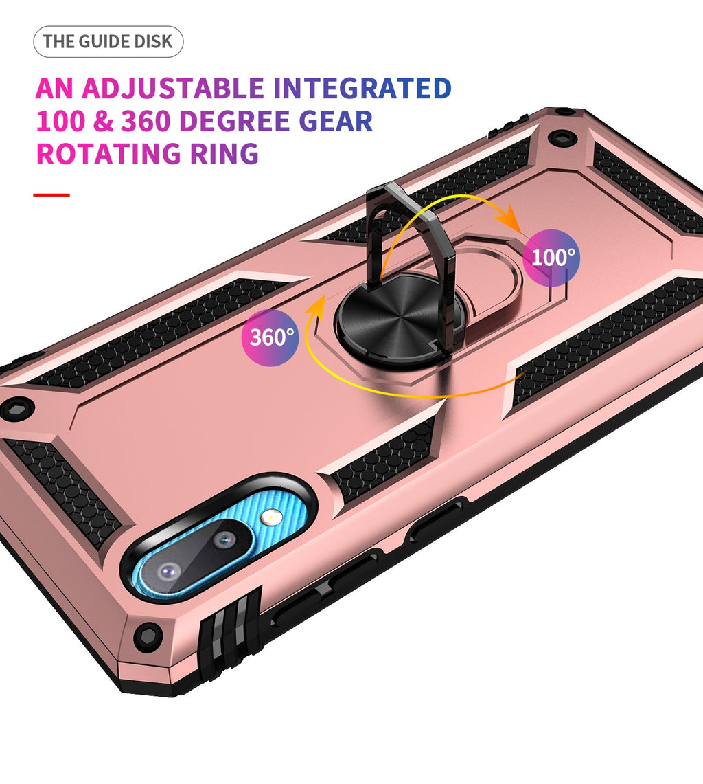 360 degree rotatable aluminum alloy ring kickstand on the Samsung Galaxy A02 Case allows for the optimal viewing position