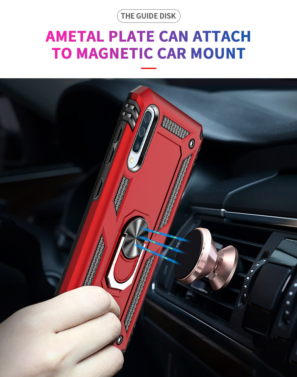 Brand New Premium Quality Heavy Duty Military Armour Kickstand Rugged Samsung A50 Case with 360 degree rotatable ring grip holder and metal patch