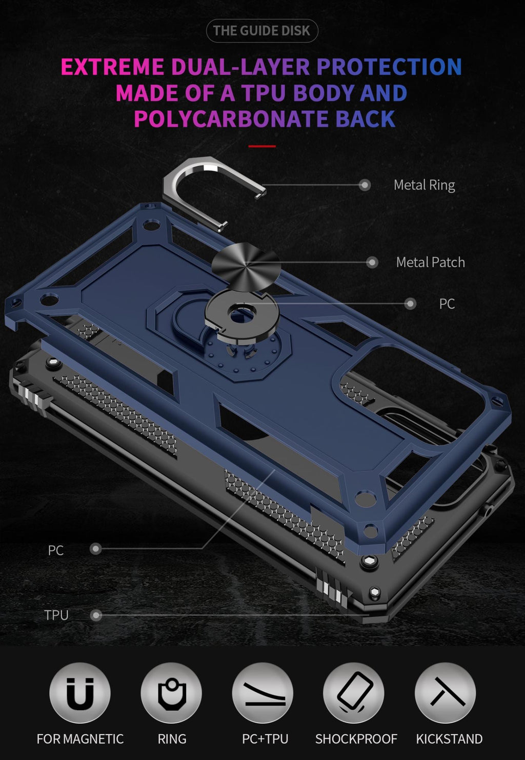 360 degree rotatable aluminum alloy ring kickstand on the Samsung A52s 5G Case allows for the optimal viewing position