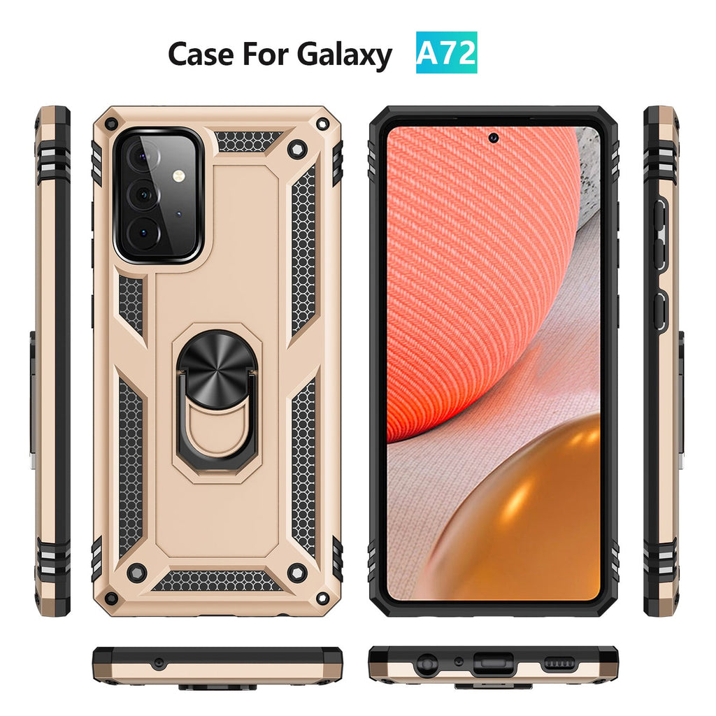Brand New Premium Quality Heavy Duty Military Armour Kickstand Rugged Samsung A72 Case With 360 Degree Rotatable Ring Grip Holder And Metal Patch