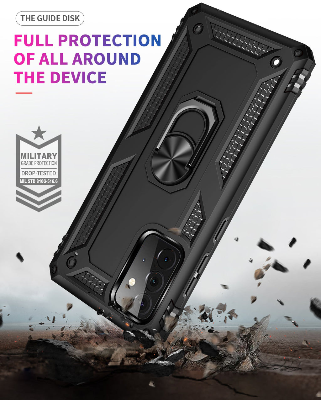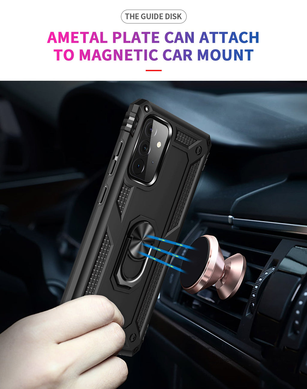 Brand New Premium Quality Heavy Duty Military Armour Kickstand Rugged Samsung A72 Case With 360 Degree Rotatable Ring Grip Holder And Metal Patch