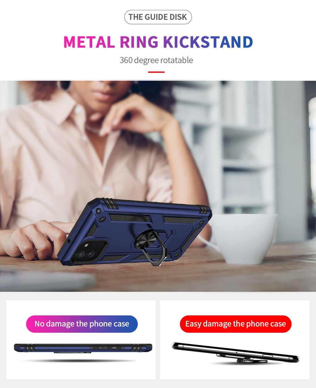 360 degree rotatable aluminium alloy ring kickstand on the Samsung Galaxy A03 Case allows for the optimal viewing position