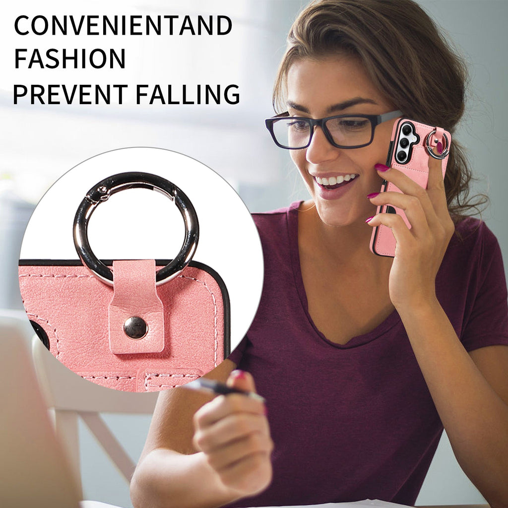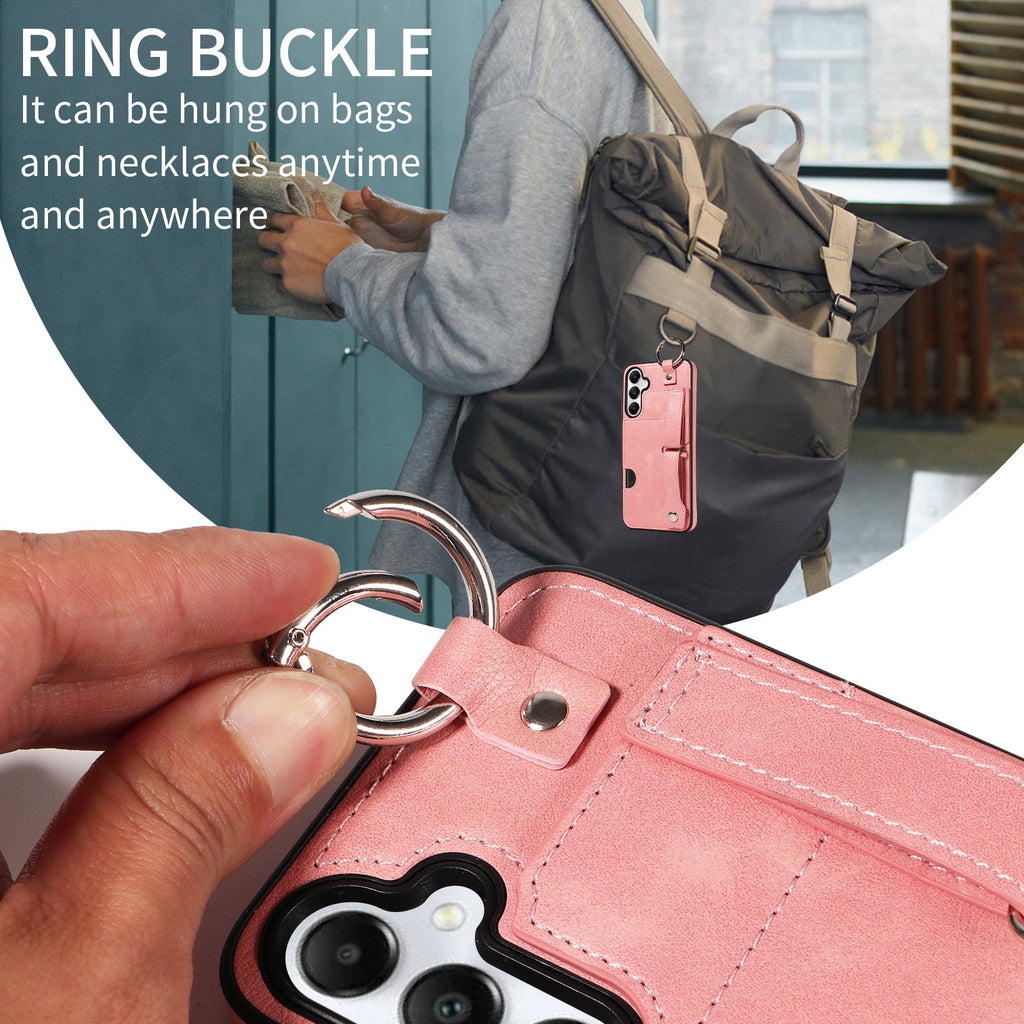 Ring buckle on the top can be used to hung the phone on bags