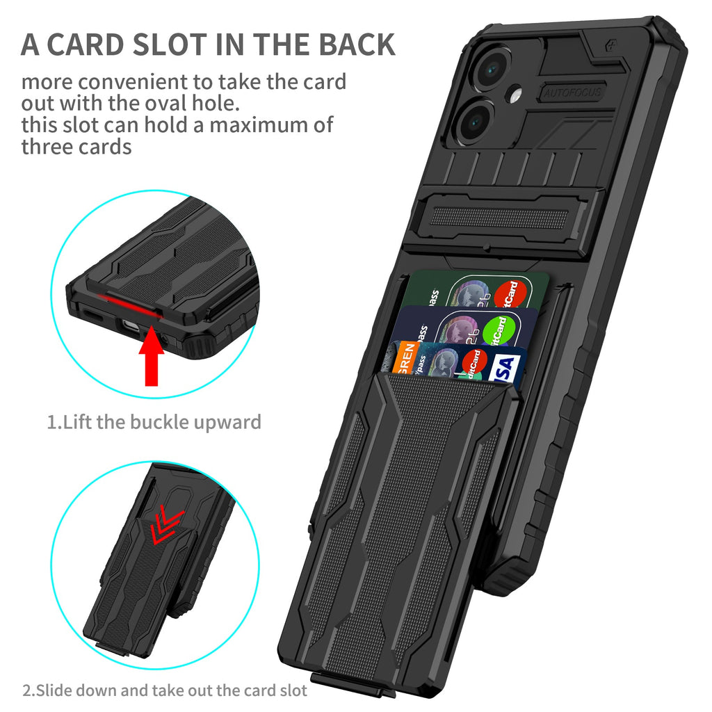 Slide Down Card Holder Samsung Galaxy A06 Case, Heavy Duty Rugged Samsung Galaxy A06 Case, Defender Armour Samsung Galaxy A06 Case, Kickstand Samsung Galaxy A06 Cover, Shockproof Tough Samsung Galaxy A06 Cover, Drop protection for Samsung Galaxy A06