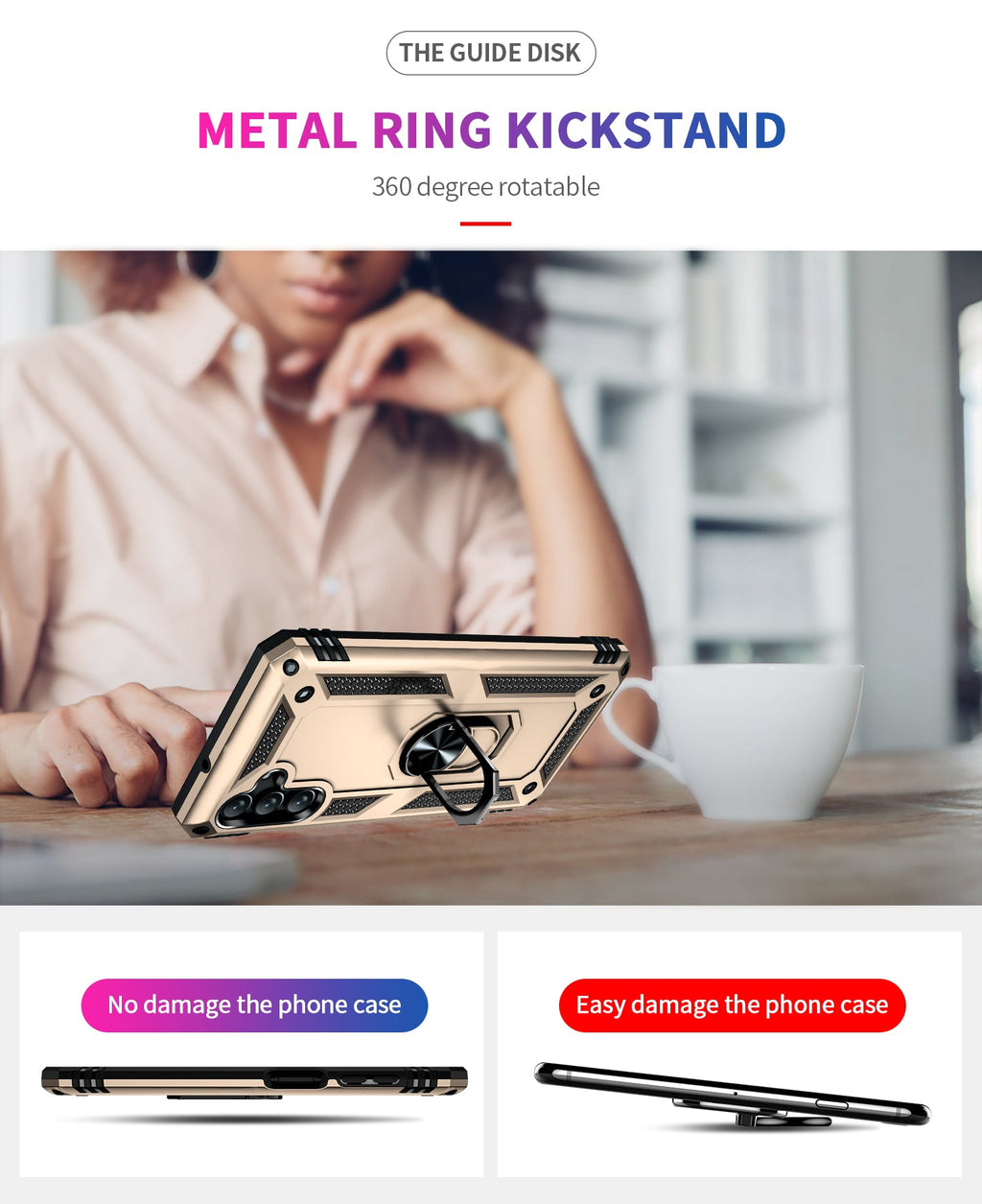 360 degree rotatable aluminum alloy ring kickstand on the Samsung Galaxy A13 5G Case allows for the optimal viewing position