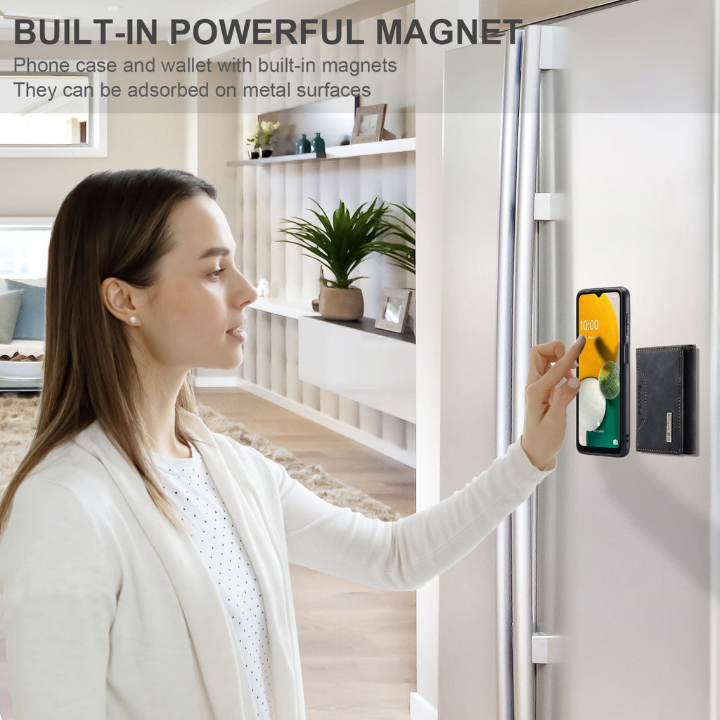 DG.MING Samsung Galaxy A14 Case features a two-in-one design with a phone case and a mini wallet that can be attached together by strong magnetism.