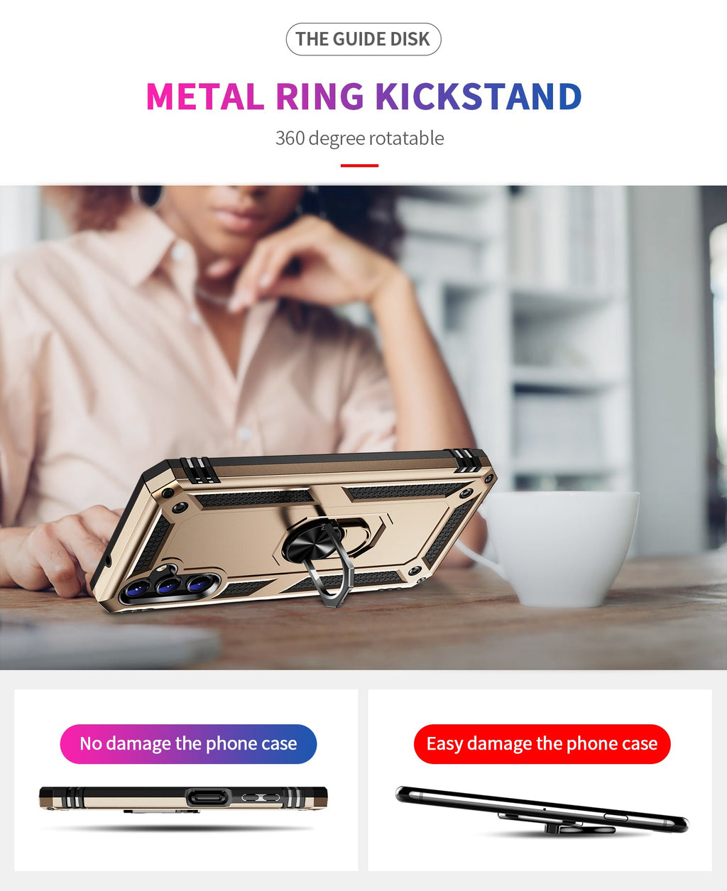 360 degree rotatable aluminum alloy ring kickstand on the Samsung Galaxy A14 Case allows for the optimal viewing position