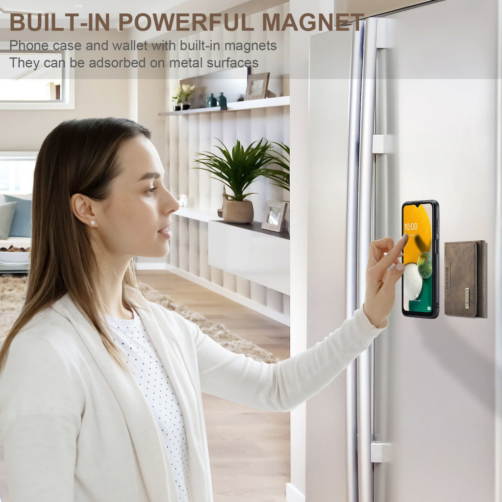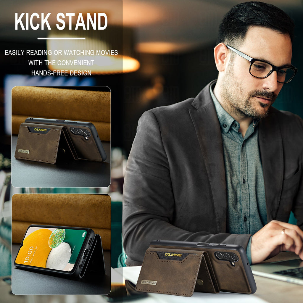DG.MING Samsung Galaxy A14 Case features a two-in-one design with a phone case and a mini wallet that can be attached together by strong magnetism.