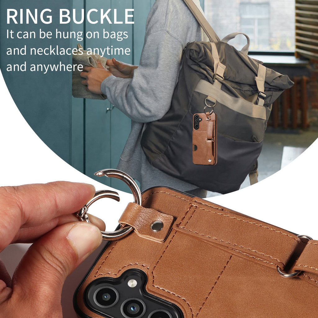 Quality PU Leather Single Card Samsung Galaxy A15 Case with Hand Strap