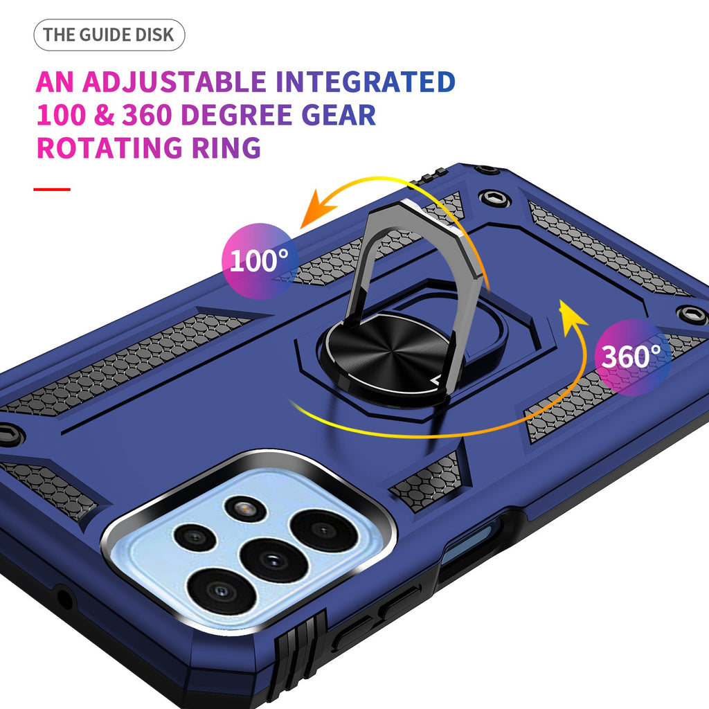 Premium Quality Heavy Duty Military Armour Kickstand Rugged Samsung Galaxy A23 Case With 360 Degree Rotatable Ring Grip Holder And Metal Patch