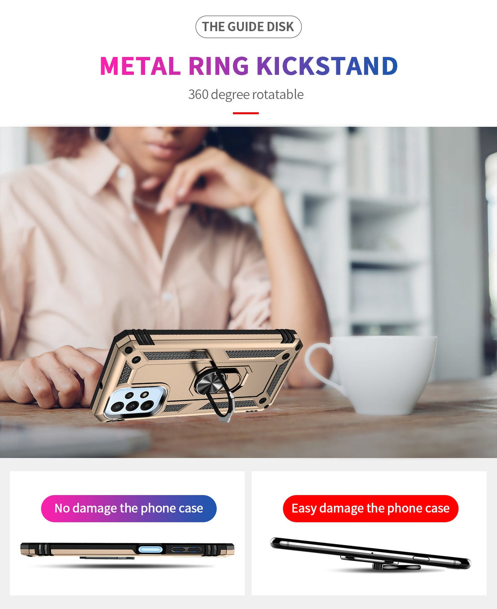 360 degree rotatable aluminum alloy ring kickstand on the Samsung Galaxy A23 Case allows for the optimal viewing position