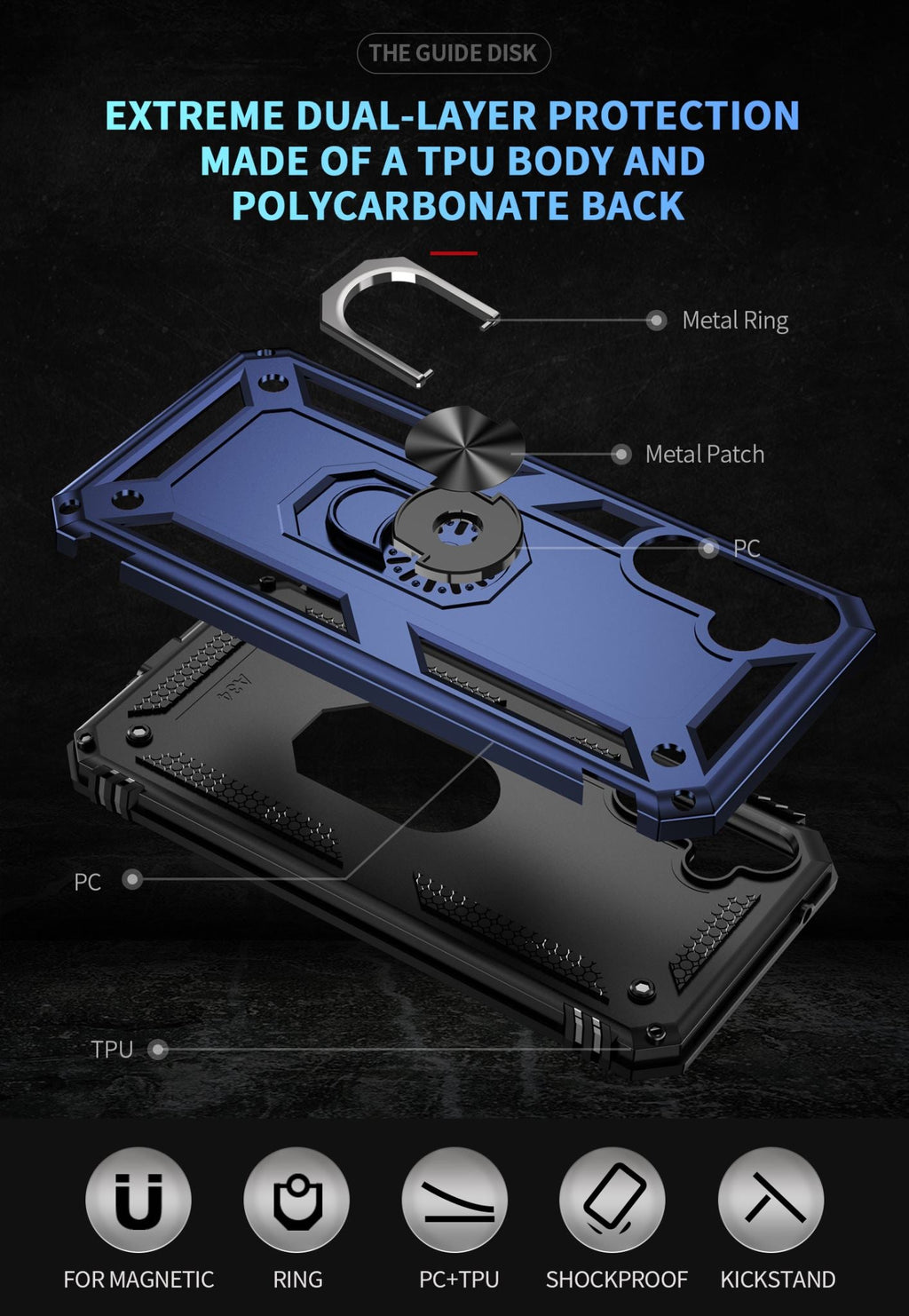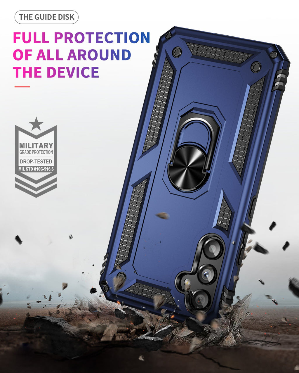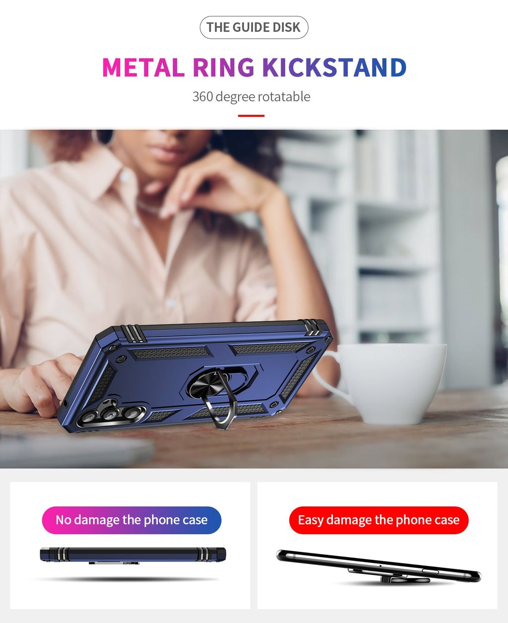 360 degree rotatable aluminum alloy ring kickstand on the Samsung Galaxy A34 Case 5G allows for the optimal viewing position