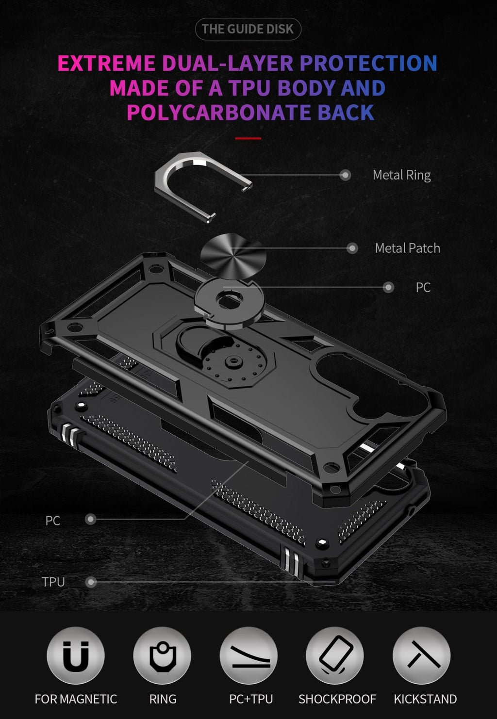 360 degree rotatable aluminum alloy ring kickstand allows for optimal viewing position