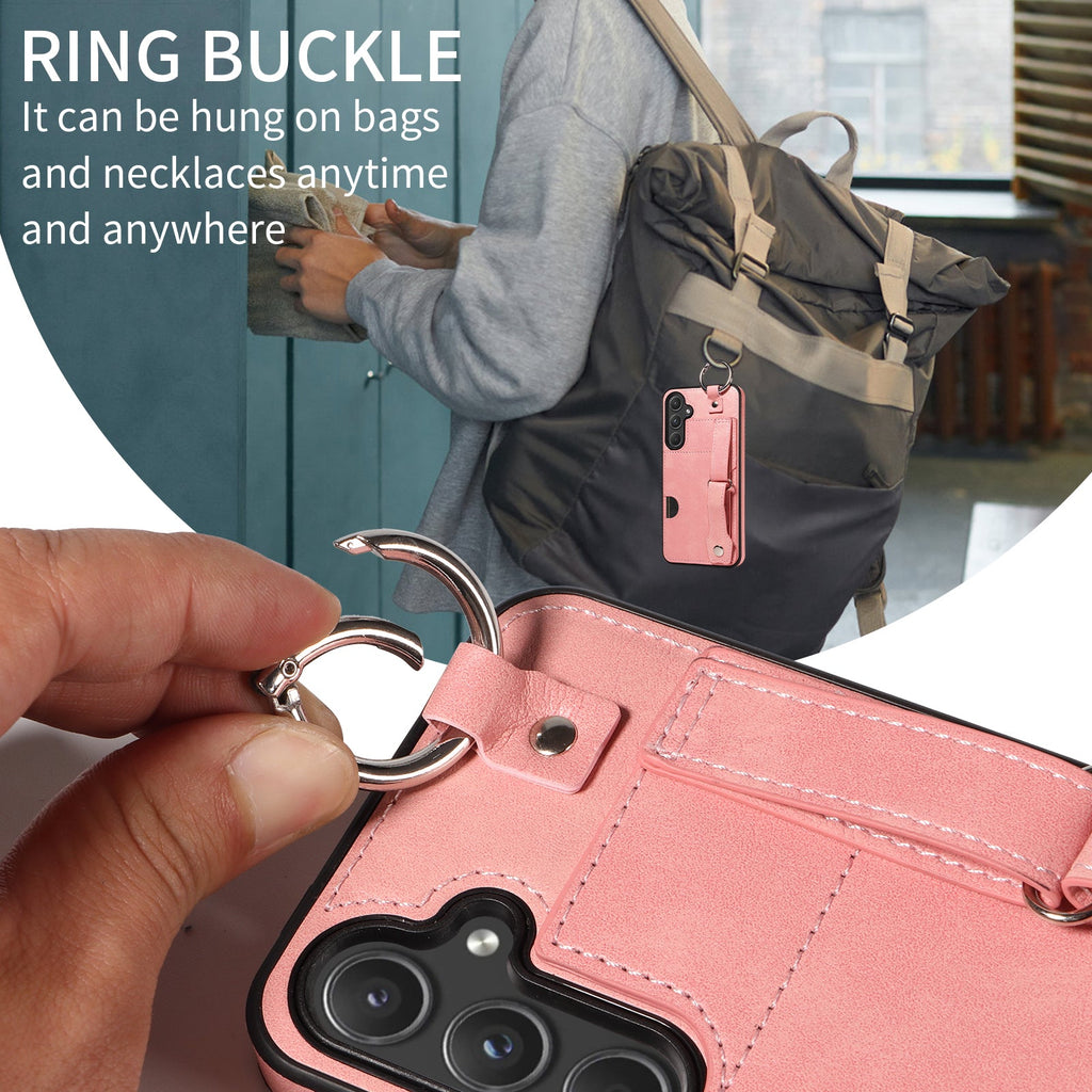 Quality PU Leather Single Card Samsung Galaxy A55 Case with Hand Strap