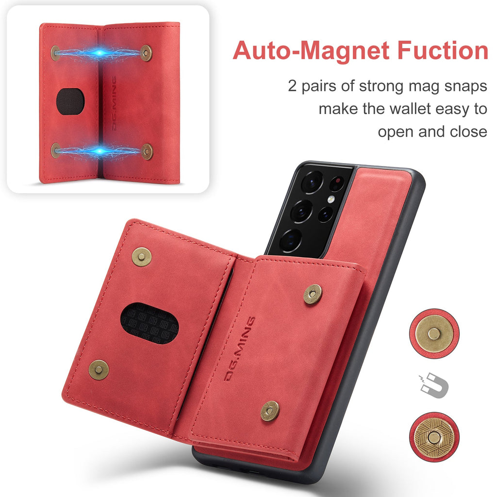 DG.MING Samsung Galaxy S21 Ultra Case features a two-in-one design with a phone case and a mini wallet that can be attached together by strong magnetism.