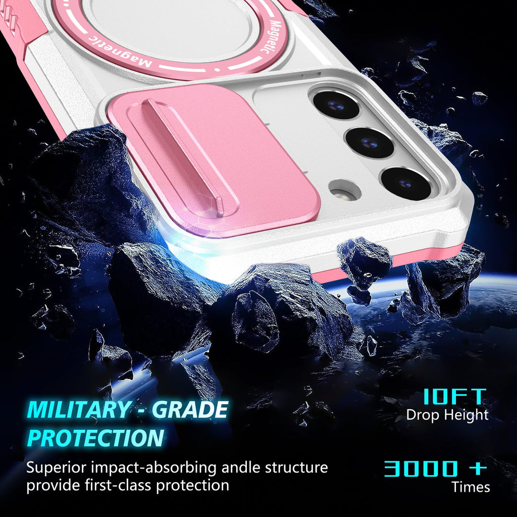 Quality MagSafe Compatible Magnetic Ring Heavy Duty Kickstand Samsung Galaxy S22 Case with Rear Camera Sliding Cover