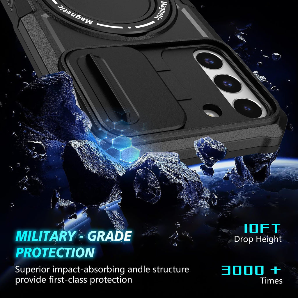 Quality MagSafe Compatible Magnetic Ring Heavy Duty Kickstand Samsung Galaxy S22+ Case with Rear Camera Sliding Cover