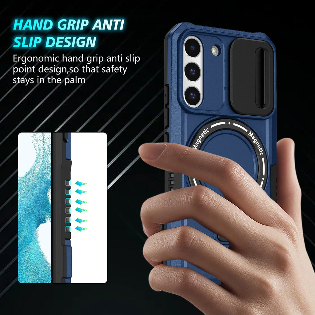 Quality MagSafe Compatible Magnetic Ring Heavy Duty Kickstand Samsung Galaxy S22 Case with Rear Camera Sliding Cover