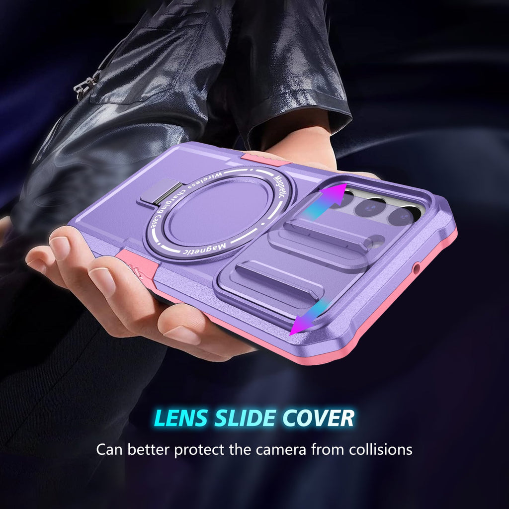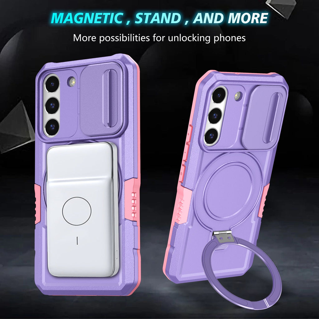 Quality MagSafe Compatible Magnetic Ring Heavy Duty Kickstand Samsung Galaxy S22 Case with Rear Camera Sliding Cover