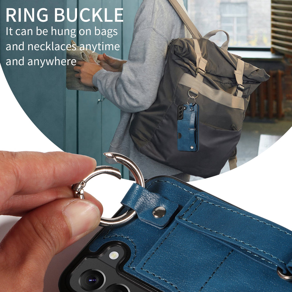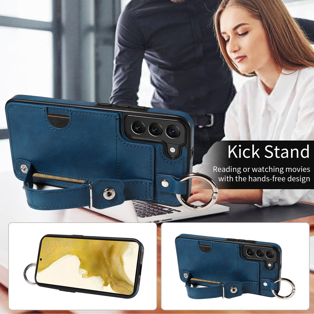 Quality PU Leather Single Card Samsung Galaxy S22+ Case with Hand Strap