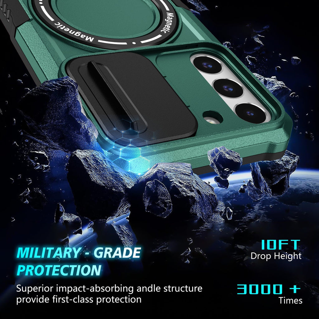 Quality MagSafe Compatible Magnetic Ring Heavy Duty Kickstand Samsung Galaxy S22 Case with Rear Camera Sliding Cover