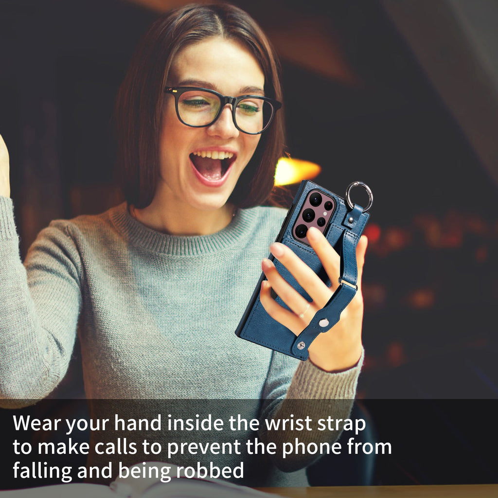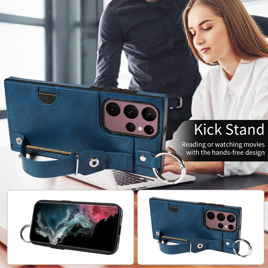 Quality PU Leather Single Card Samsung Galaxy S22 Ultra Case with Hand Strap