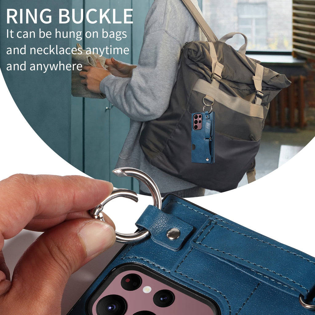 Ring buckle on the top can be used to hung the phone on bags