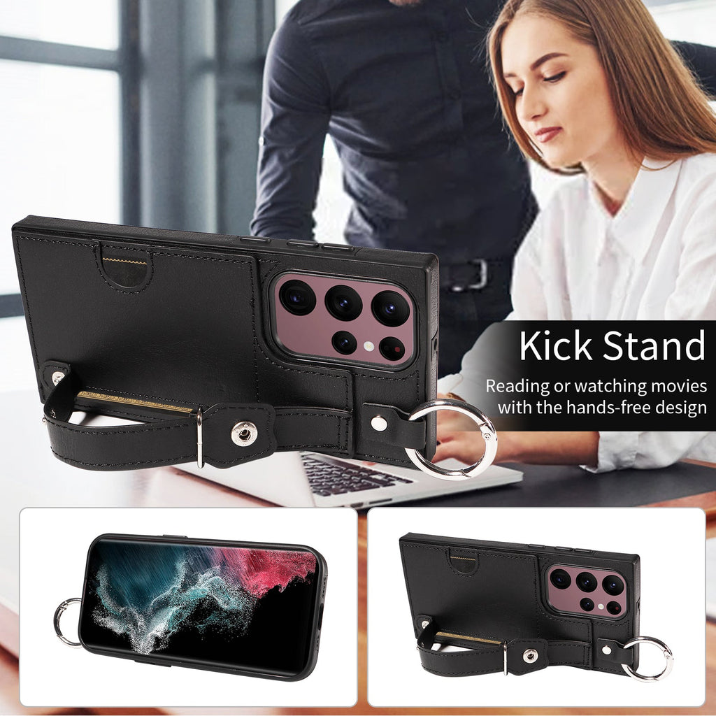 Quality PU Leather Single Card Samsung Galaxy S22 Ultra Case with Hand Strap
