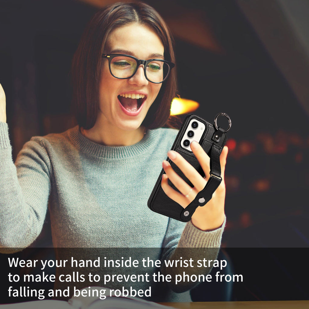Quality PU Leather Single Card Samsung Galaxy S23+ Case with Hand Strap