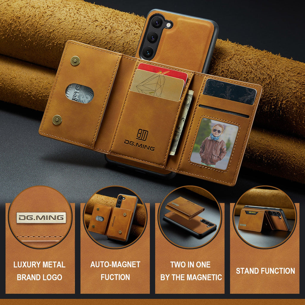 DG.MING Samsung Galaxy S23+ Case features a two-in-one design with a phone case and a mini wallet that can be attached together by strong magnetism.