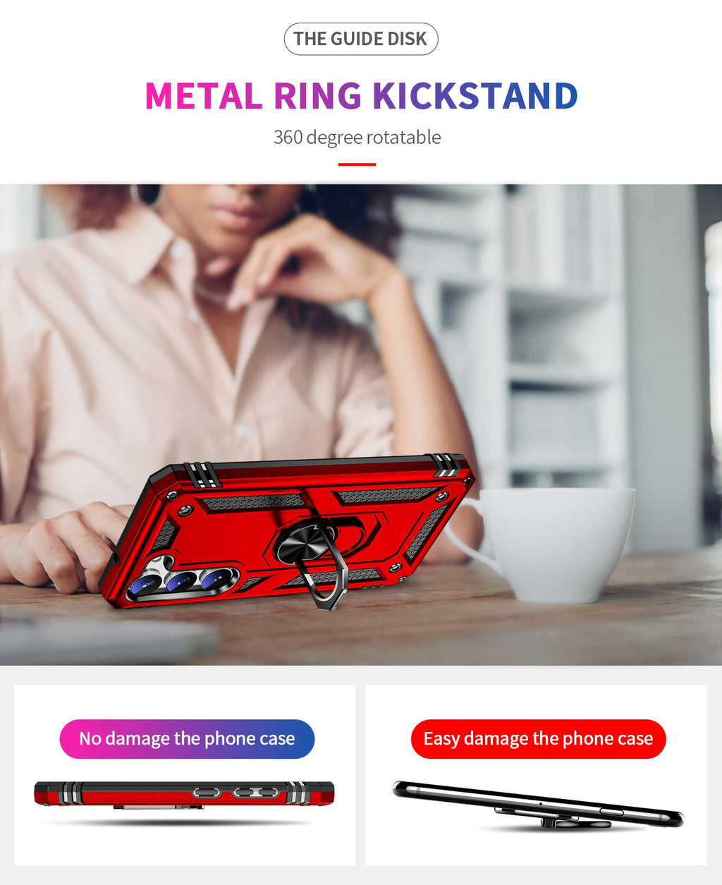 360 degree rotatable aluminum alloy ring kickstand on the Samsung Galaxy S23 Case allows for the optimal viewing position