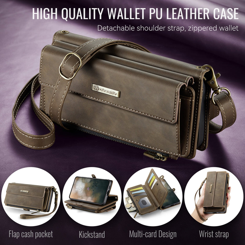 Give your Galaxy S23 FE an elegant all-in-one solution with the CaseMe Crossbody Wallet Case — combining premium vintage-inspired design with daily practicality. This crossbody phone case doubles as a compact wallet and purse replacement, perfect for hands-free shopping, travel, or everyday use.